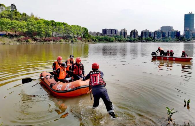 本次防汛救援演練按照“統(tǒng)一指揮、科學(xué)調(diào)度、分工負責(zé)、上下聯(lián)動”的原則展開,共舉行沖鋒舟救援落水者,無動力皮劃艇救援落水者,沖鋒舟湖面巡邏巡視等演練項目;消防培訓(xùn)以“項目展示、綜合演練”的形式開展,進行消防知識培訓(xùn)及問答、滅火器實操培訓(xùn)、消防栓滅火實操等環(huán)節(jié)。