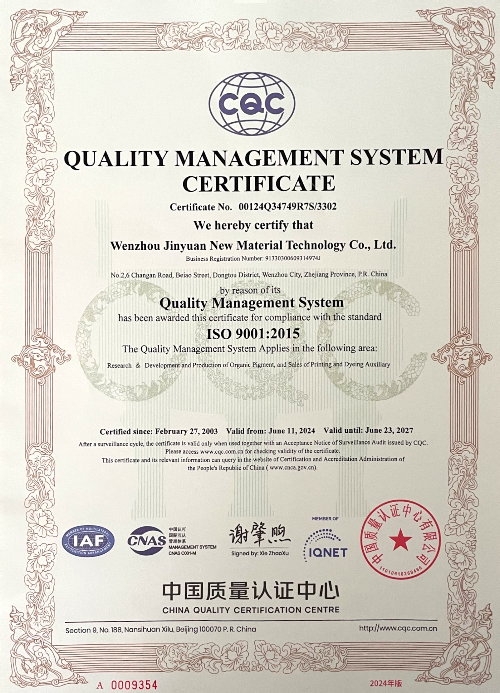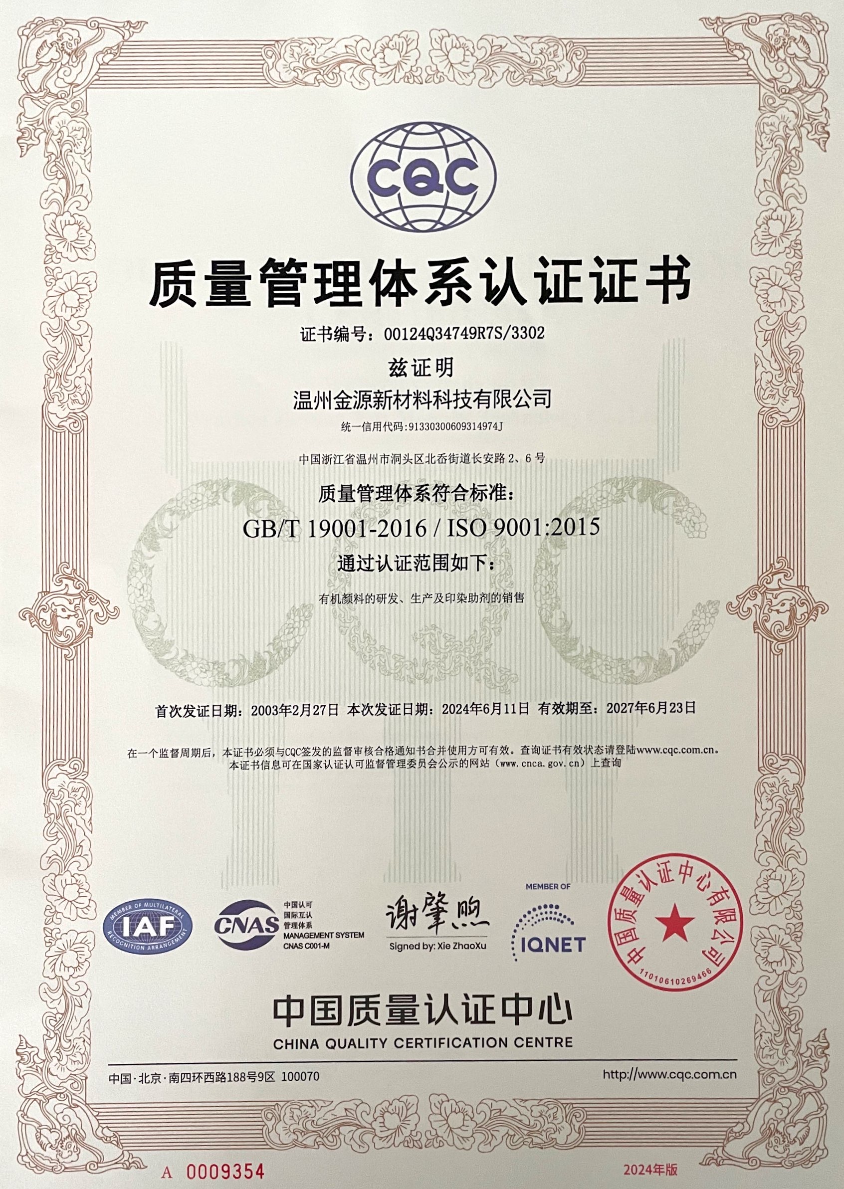 質(zhì)量管理體系認(rèn)證證書